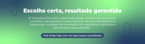 A Conection Soluções reúne todos esses critérios em um serviço completo, transparente e personalizado. Se sua empresa busca modernizar o parque de impressão com segurança, eficiência e atendimento especializado, fale ainda hoje com um dos nossos consultores.